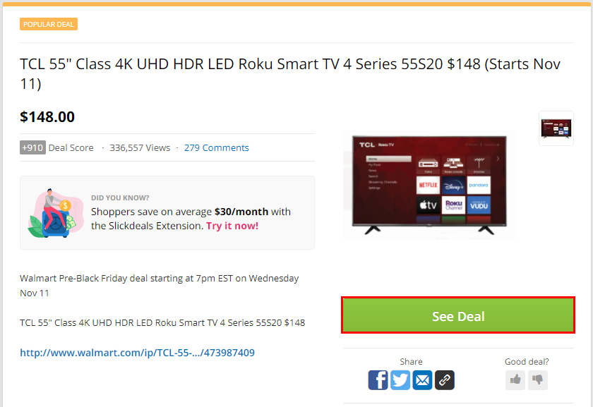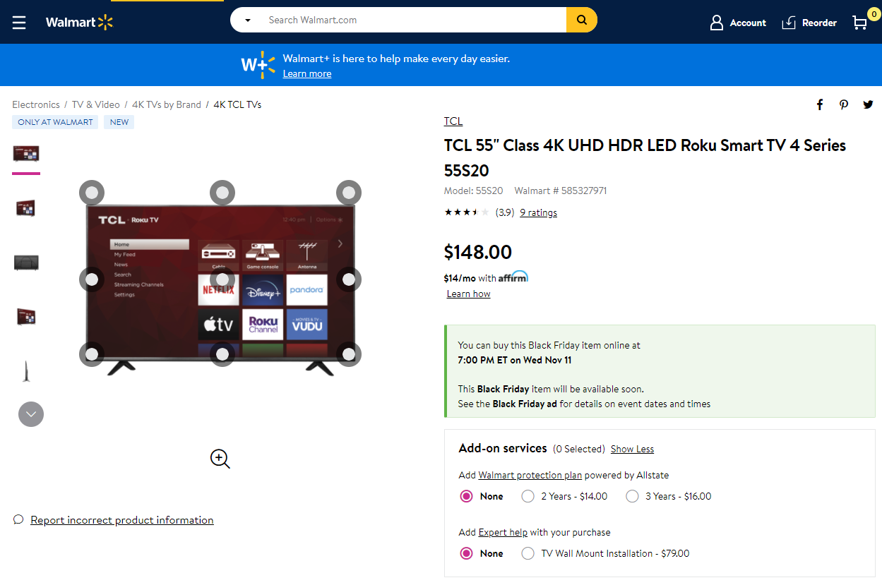 55인치 4K TV를 무려 $148에 팔고 있는 것을 확인할 수 있습니다.
