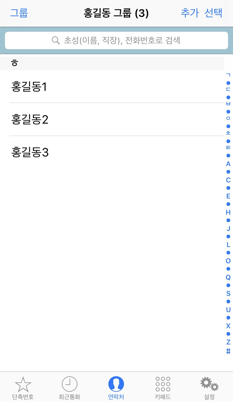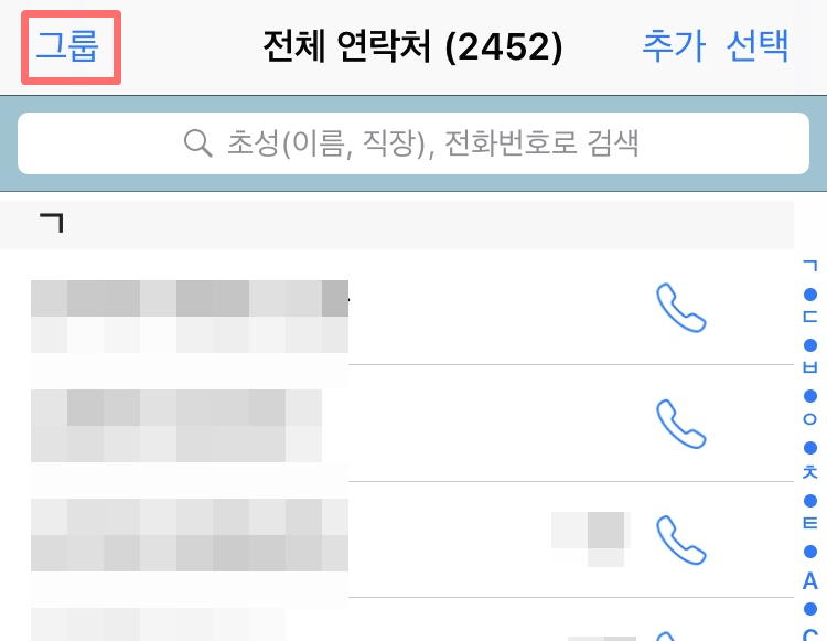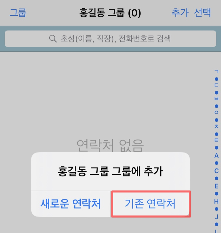 그룹은 만들었지만 그 안에 들어간 연락처는 아직 '0'명이네요.