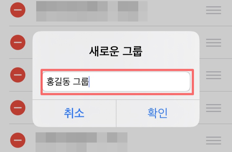 그룹 이름을 입력하고 확인 버튼을 누릅니다.