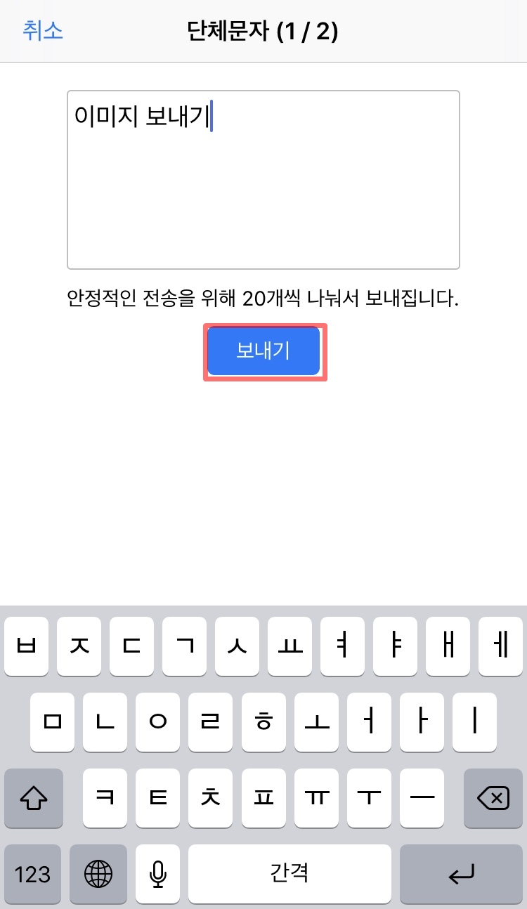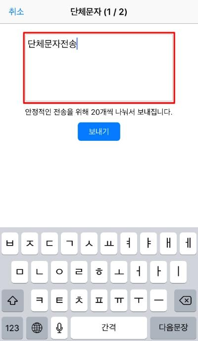 아이폰에서 단체문자를 보내고 싶어도 한번에 20명까지밖에 되지 않고, 이름을 일일이 다 검색해서 보내야 하기 때문에 많이 불편합니다.