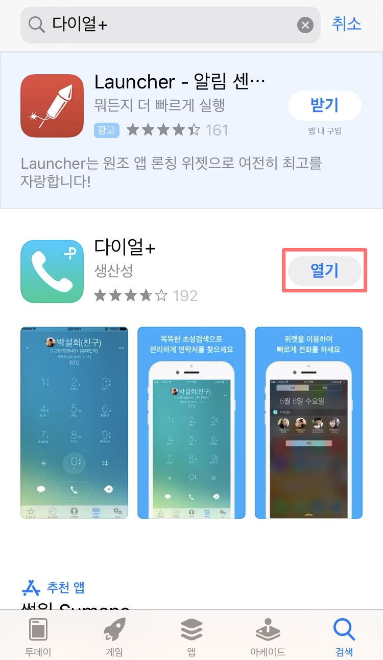앱스토어에서 다이얼+를 검색하고 다운을 받습니다.