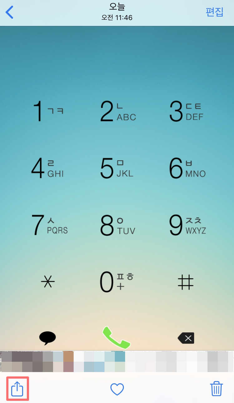 원하는 사진을 선택하신 다음에 '공유' 버튼을 눌러줍니다.