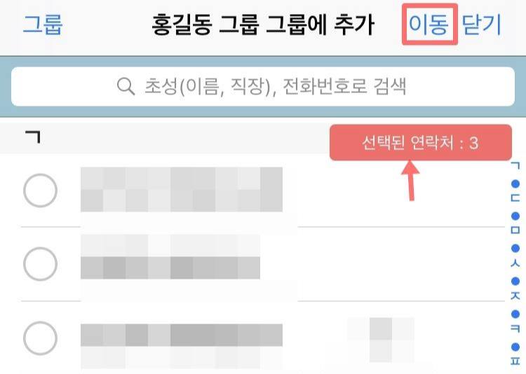 내가 선택한 연락처를 해당 그룹으로 이동한다는 개념입니다.