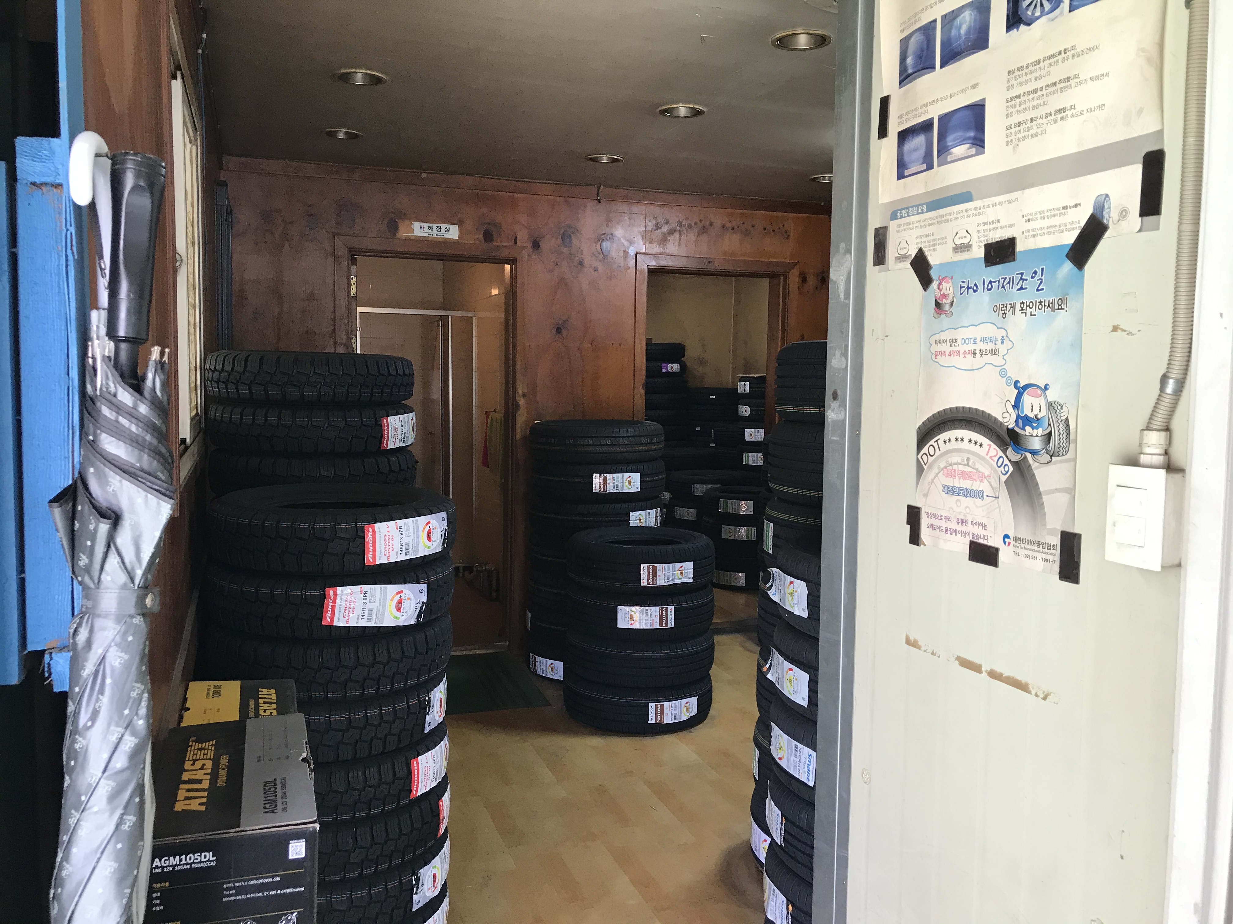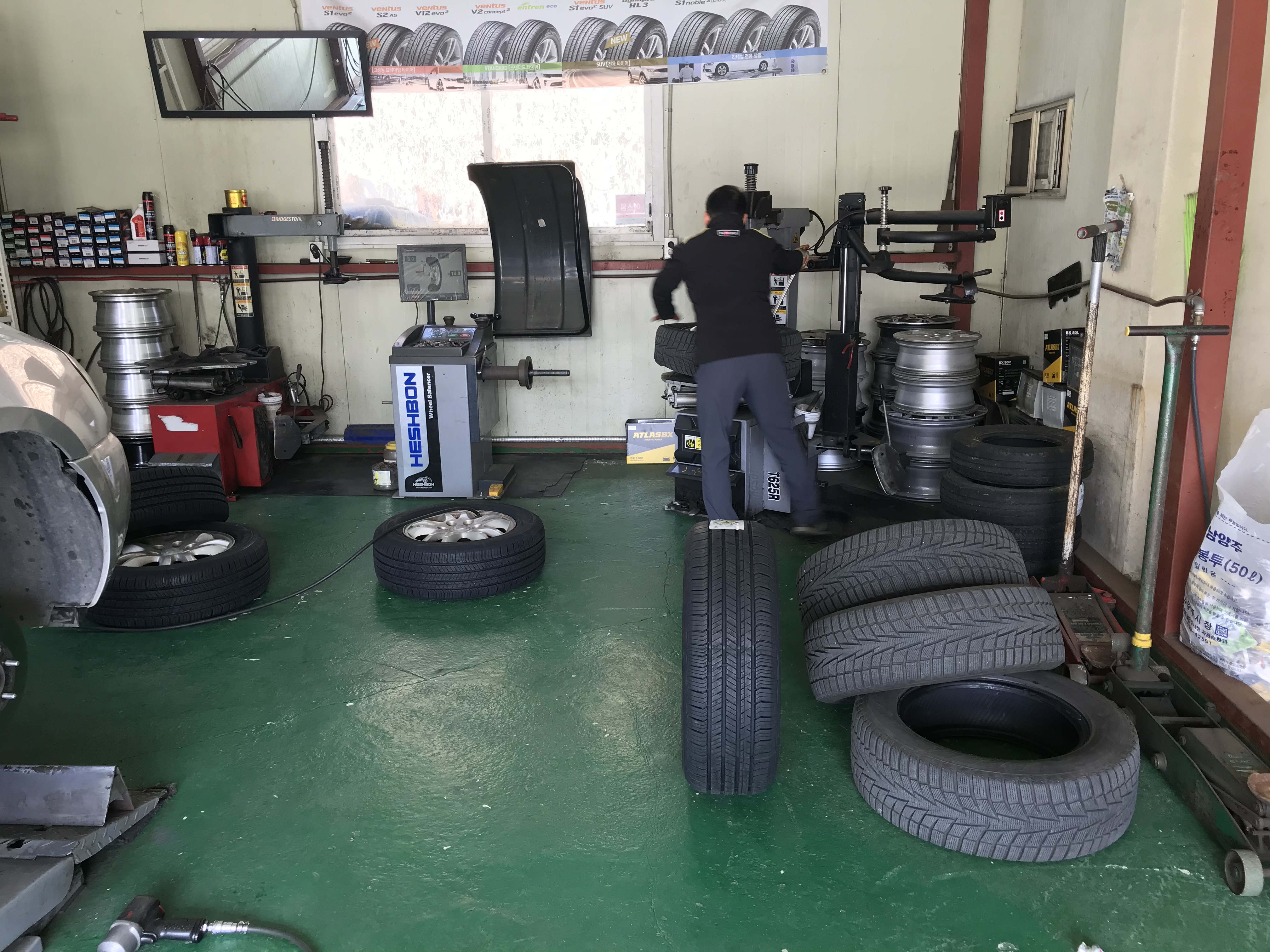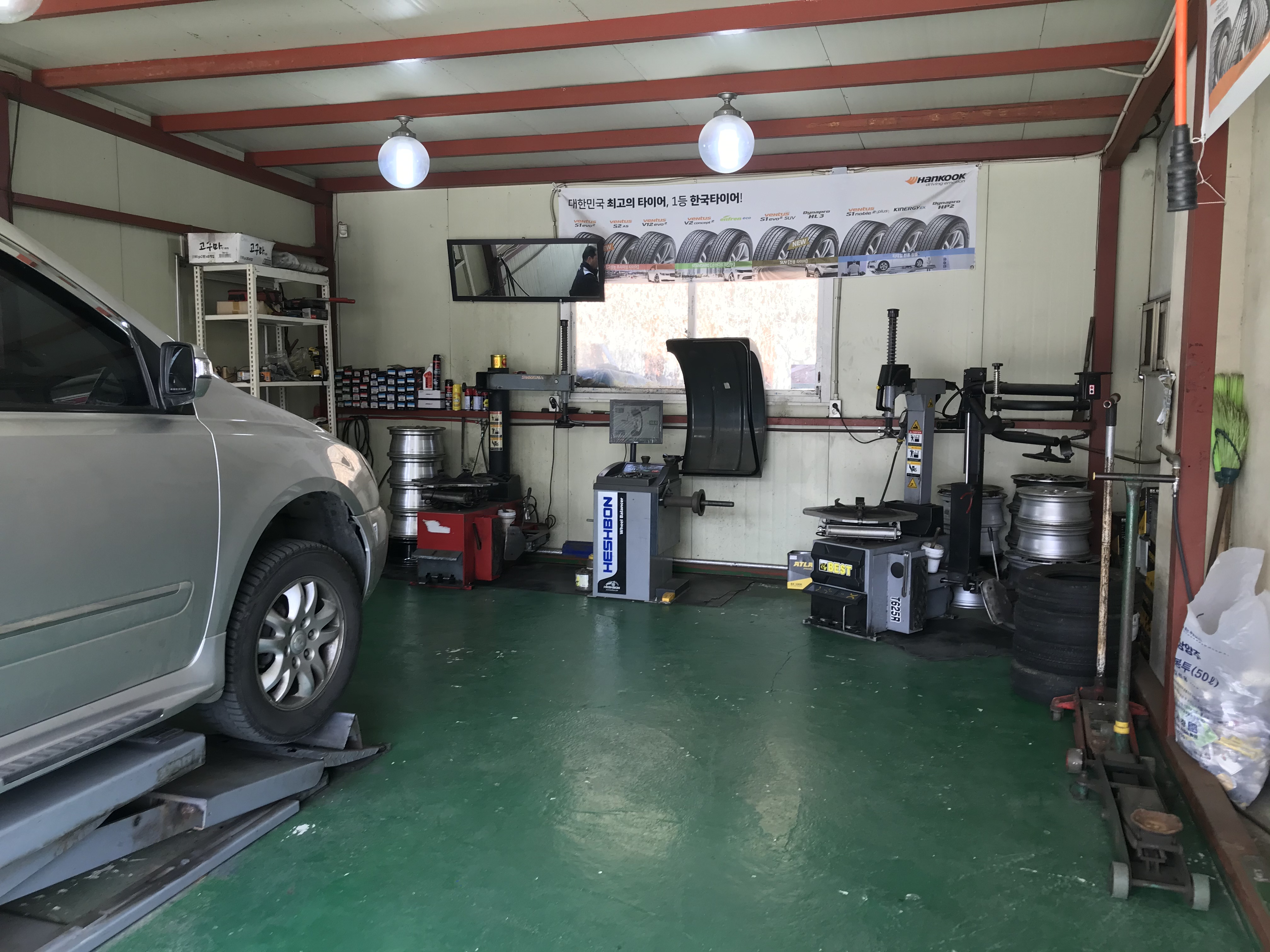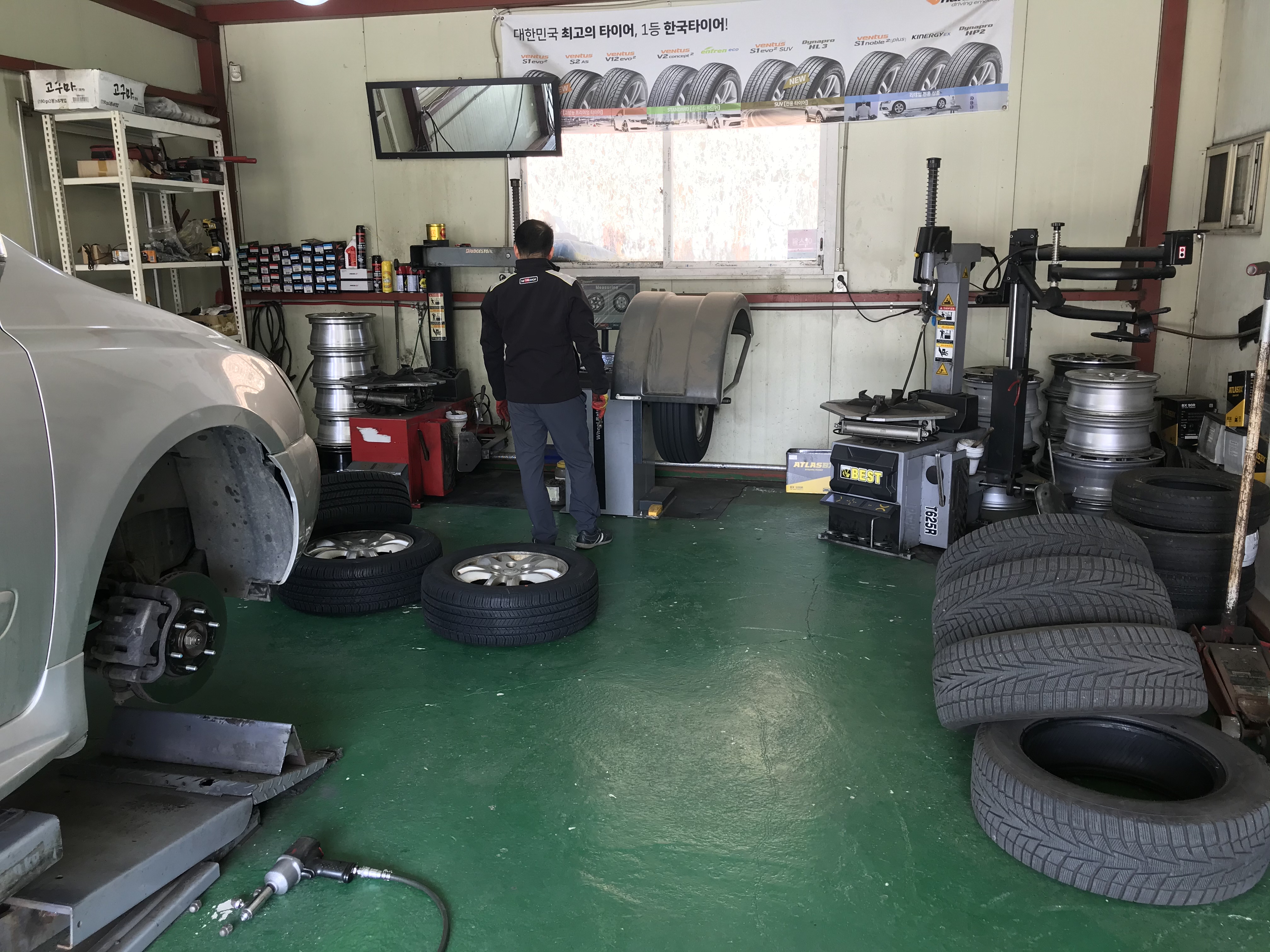 타이어 작업하는 곳입니다. 아쉽게도 휠 얼라이먼트 장비는 없네요.