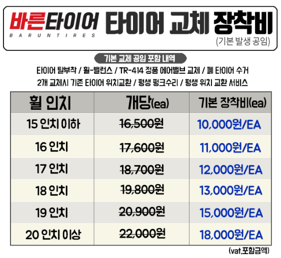 물론 여기에 장착비용, 휠밸런스 포함된 가격입니다.