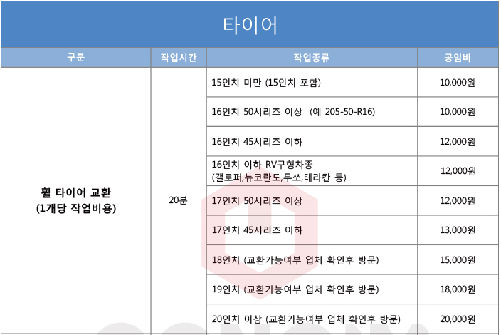 혹시 휠밸런스 비용을 따로 내라고 하면 다시는 그런 곳에 가지 마셔야 합니다.