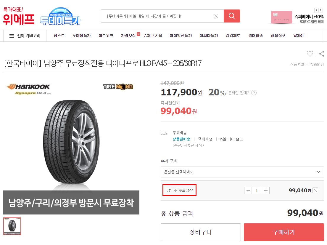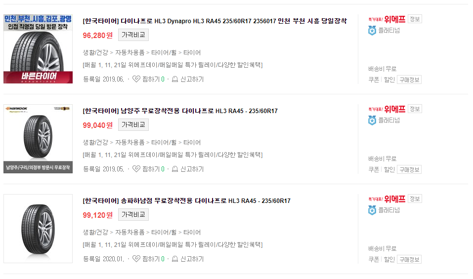 타이어 최저가로 산 다음에 장착비 저렴한 곳에서 장착하시면 됩니다.