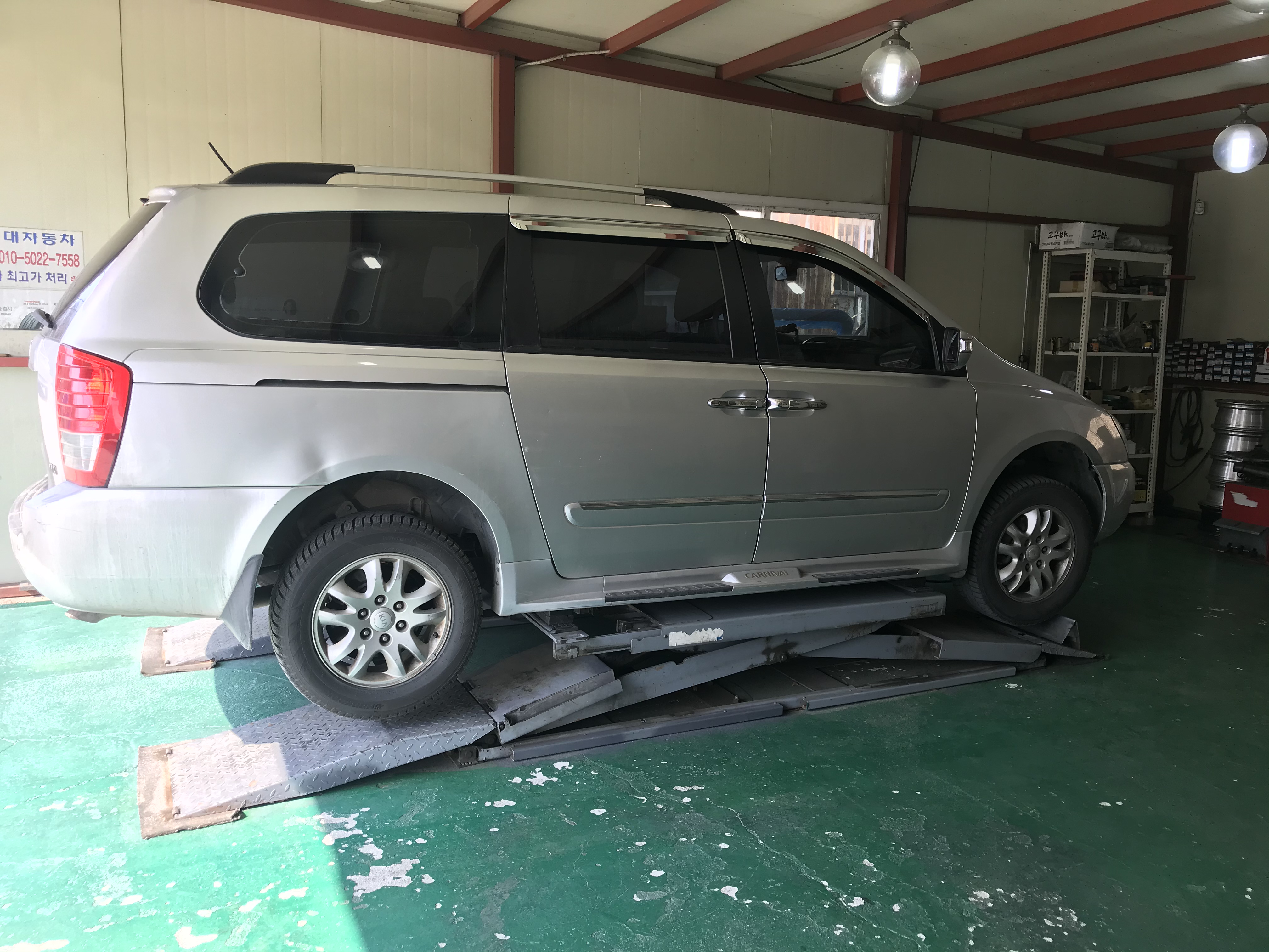 리프트로 들어 올립니다. 이렇게 보니까 카니발이 참으로 커보이네요.