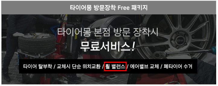 무료로 장착해 준다고 할 때, 꼭 확인해 봐야 할 부분이 '휠 밸런스' 비용입니다.