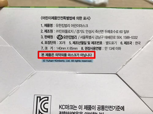 - 유한킴벌리 어린이 마스크는 국산이지만, 인증을 받지 않았다.