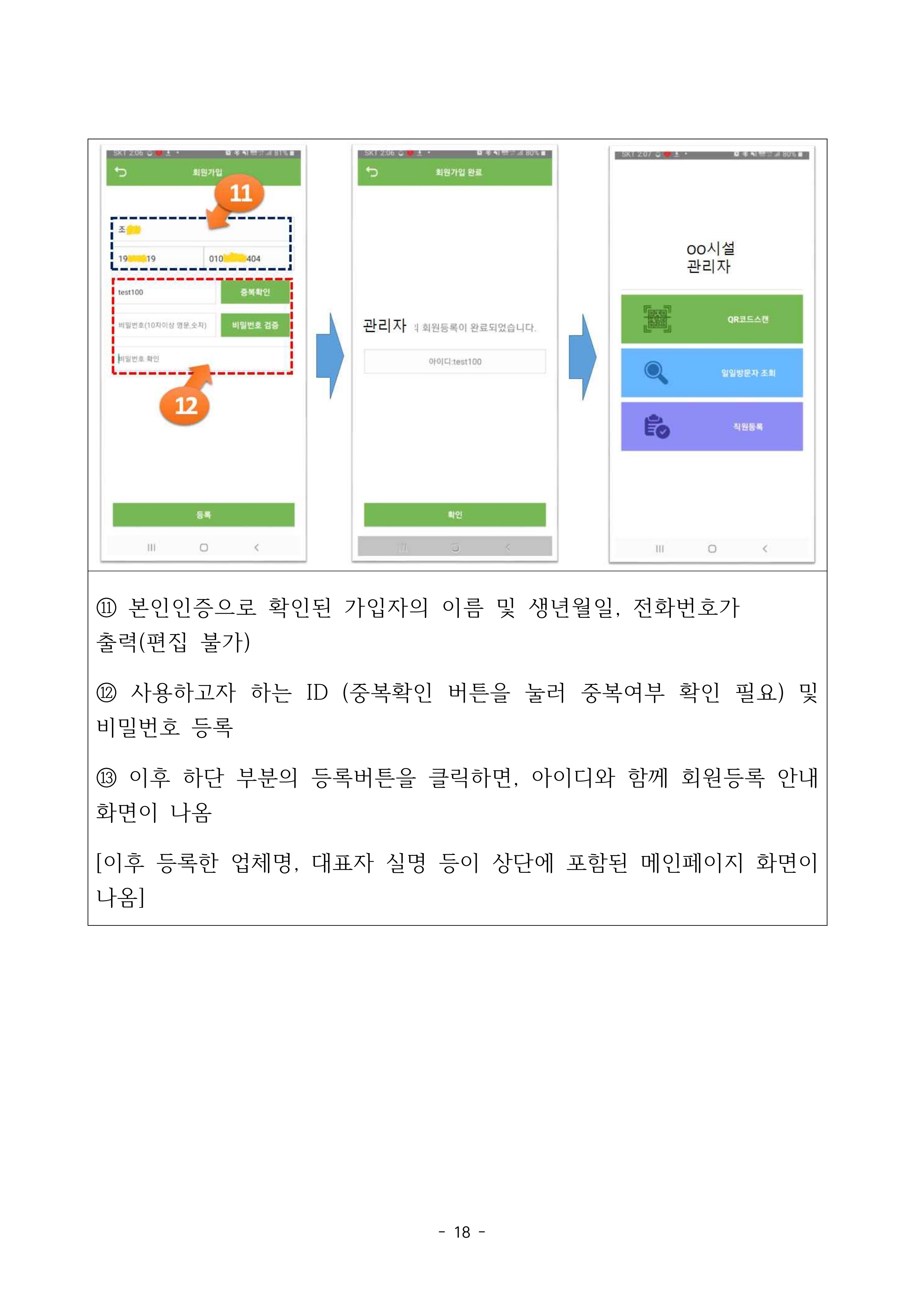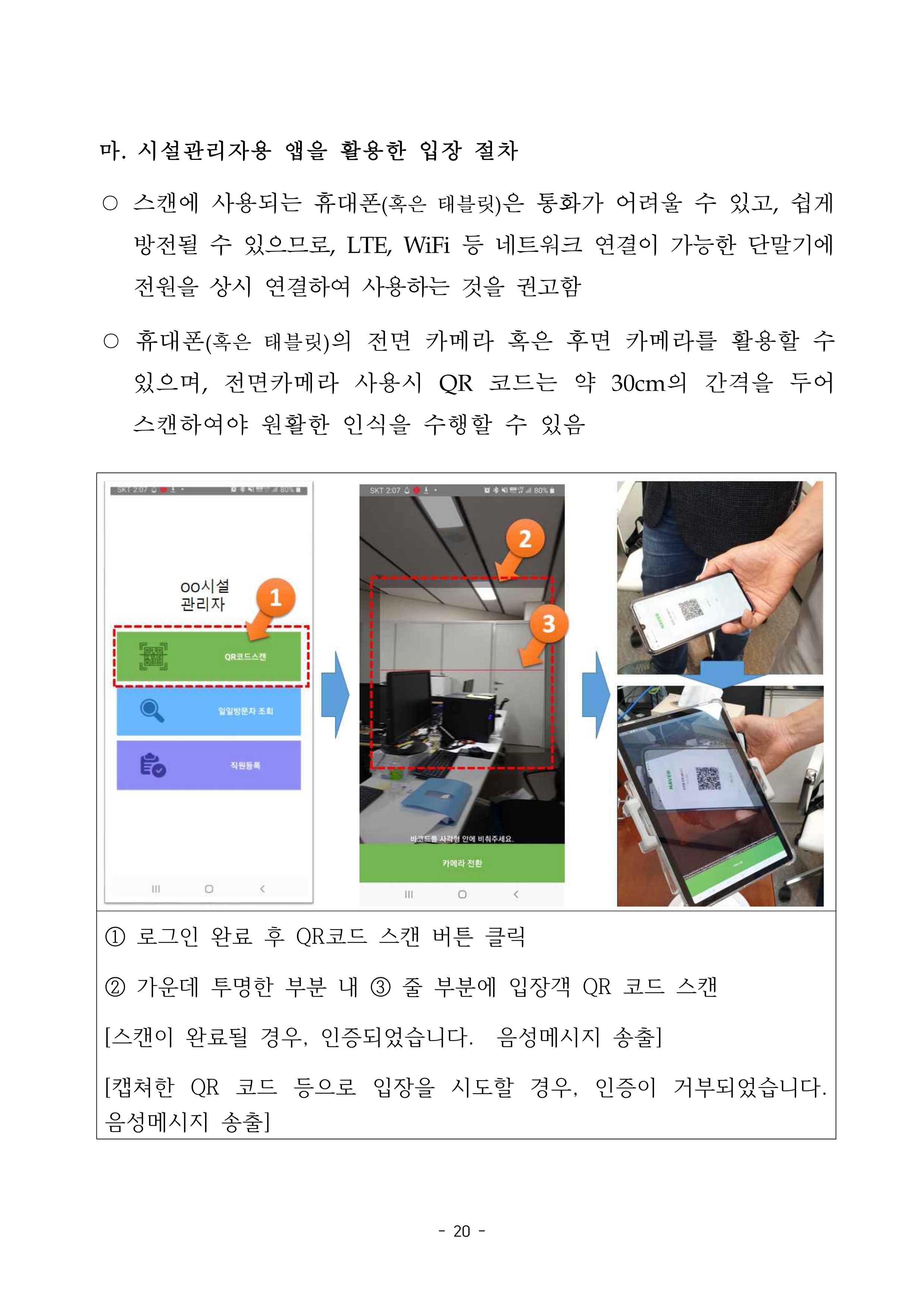 시설관리자가 QR코드 전자출입명부를 사용하는 방법은 아래에서 확인할 수 있습니다.