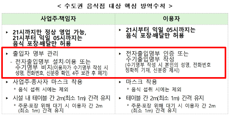 음식점 핵심 방역수칙