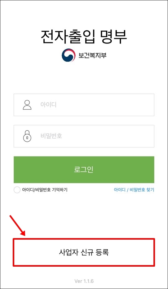 시설관리자(사업자)는 플레이스토어(안드로이드) 또는 앱스토어(iOS)를 통해 전용앱인 '전자출입명부'를 설치해주시면 됩니다.