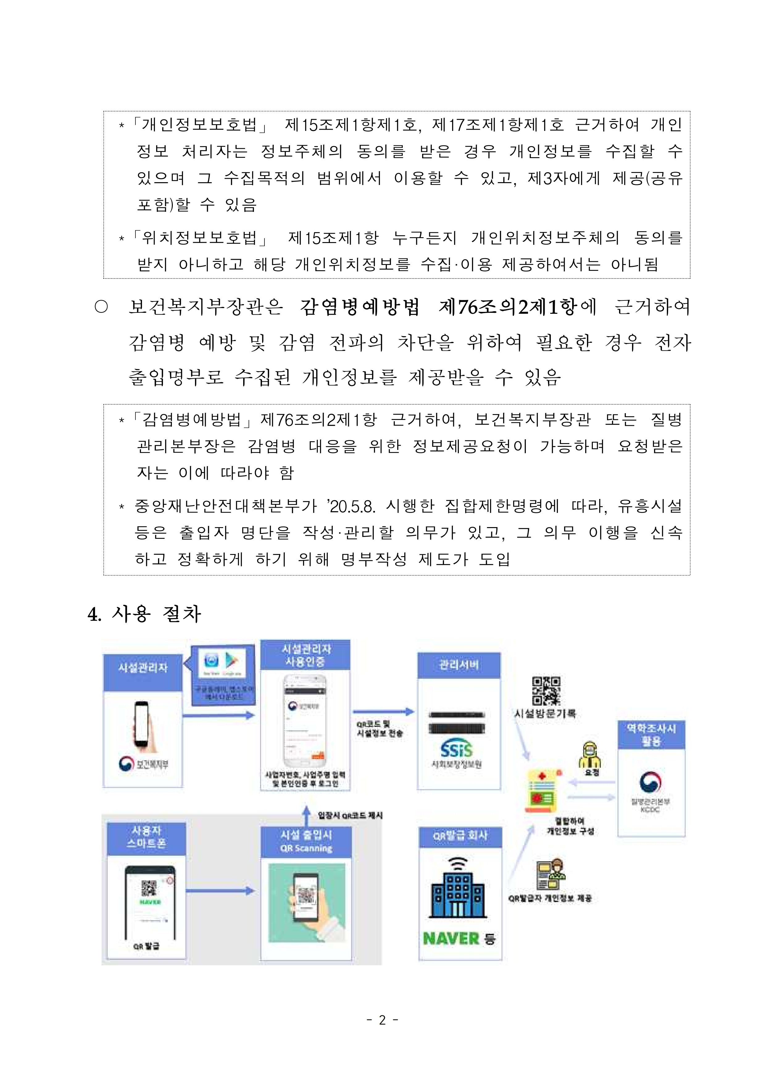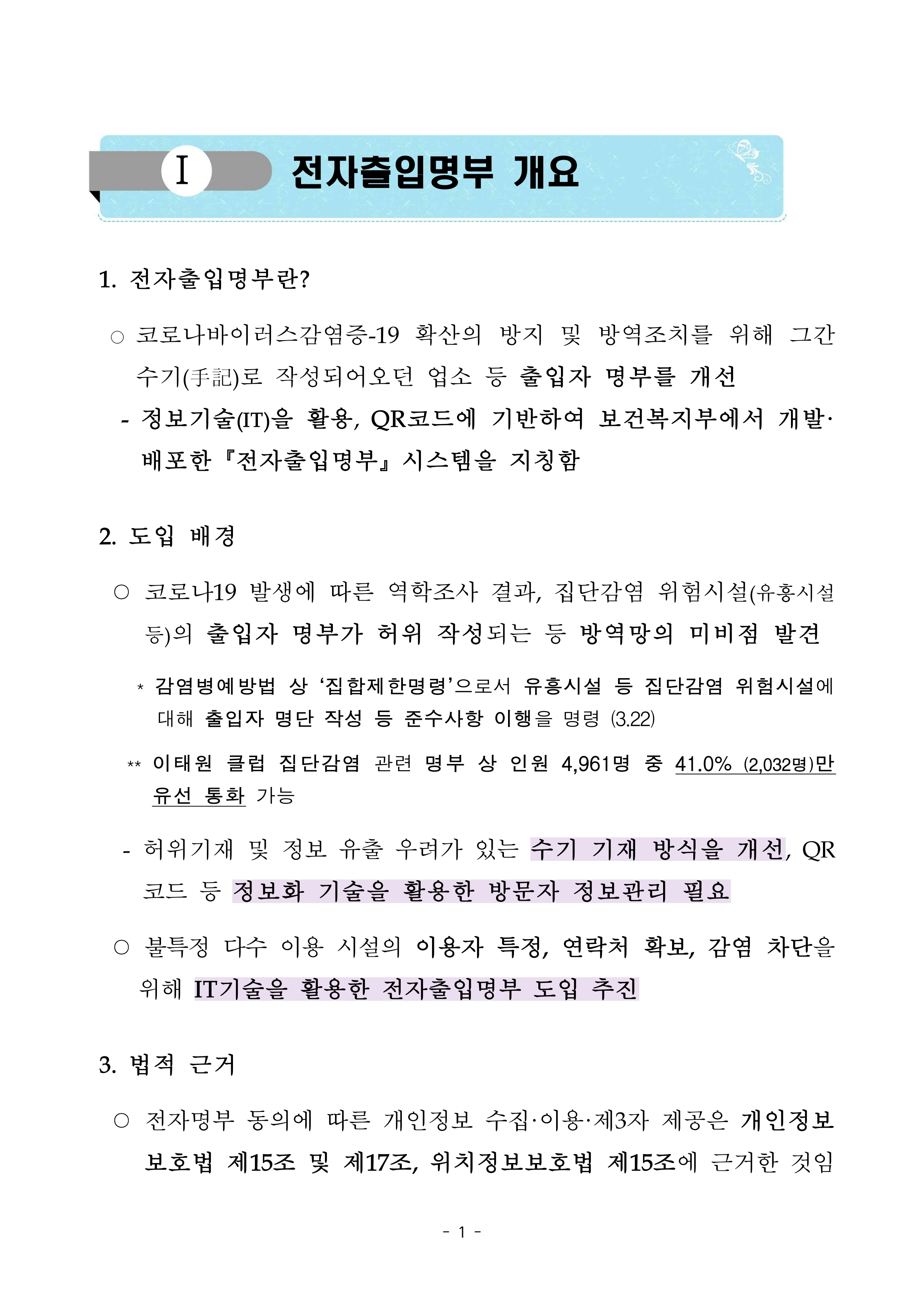 Q. 전자출입명부 사용에 대한 법적 근거는 무엇인가요?