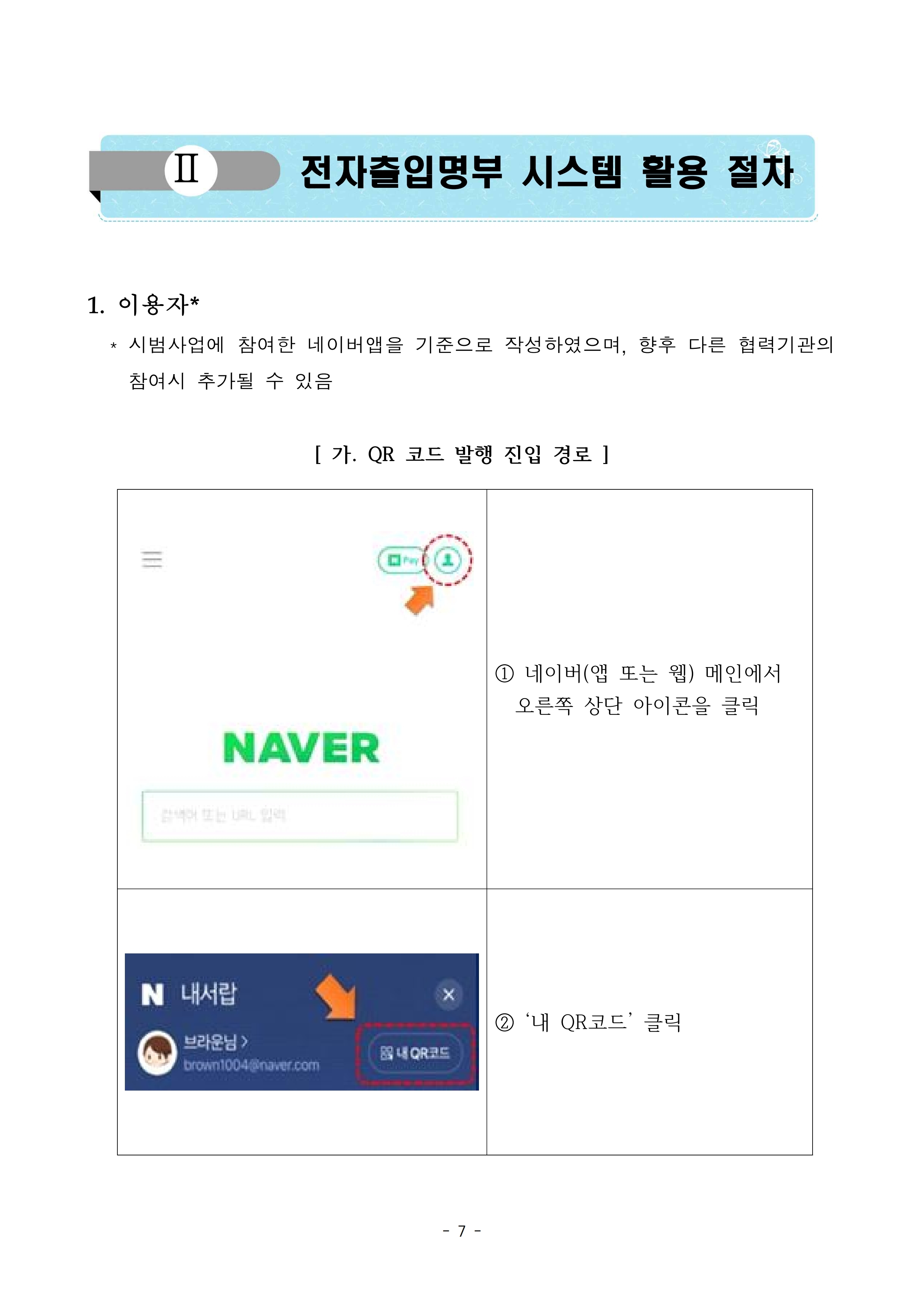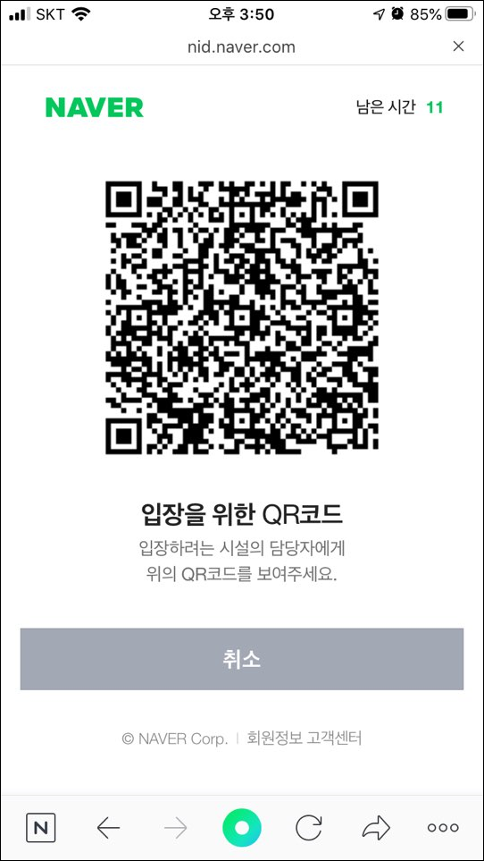 <방문자> "네이버" QR코드 전자출입명부 이용방법