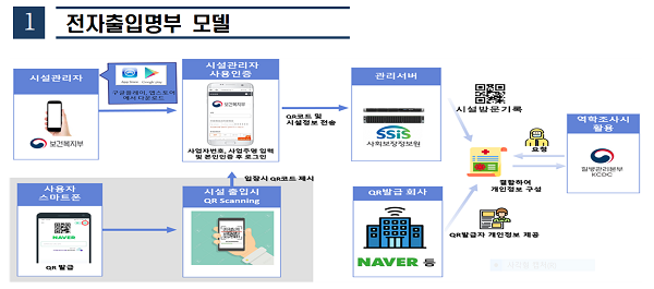 코로나19 바이러스가 확산되면서 방역조치를 하기 위하여 그동안 수기로 작성되어오던 업소의 출입자 명부를 개선하기 위하여 보건복지부에서 개발하고 배포한 전자출입명부 시스템을 말합니다.