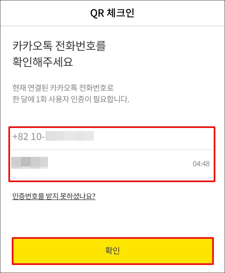 개인정보 수집 및 제공 동의에 모두 동의하신 후에 휴대폰 인증(최초 1회)을 하게 되면, 1회용 QR코드가 발급됩니다.