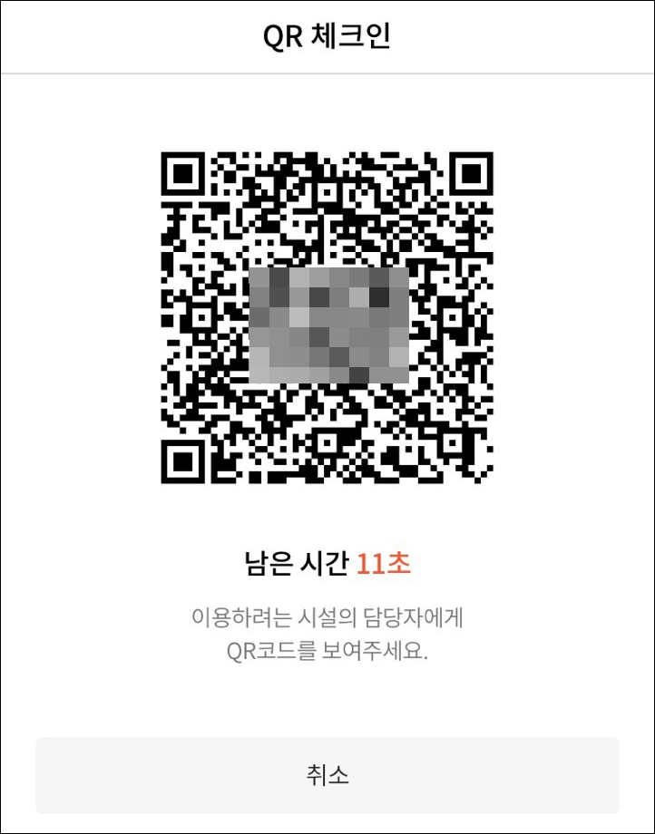 그리고 이렇게 생성된 QR코드를 시설관리자에게 보여주시면 됩니다.