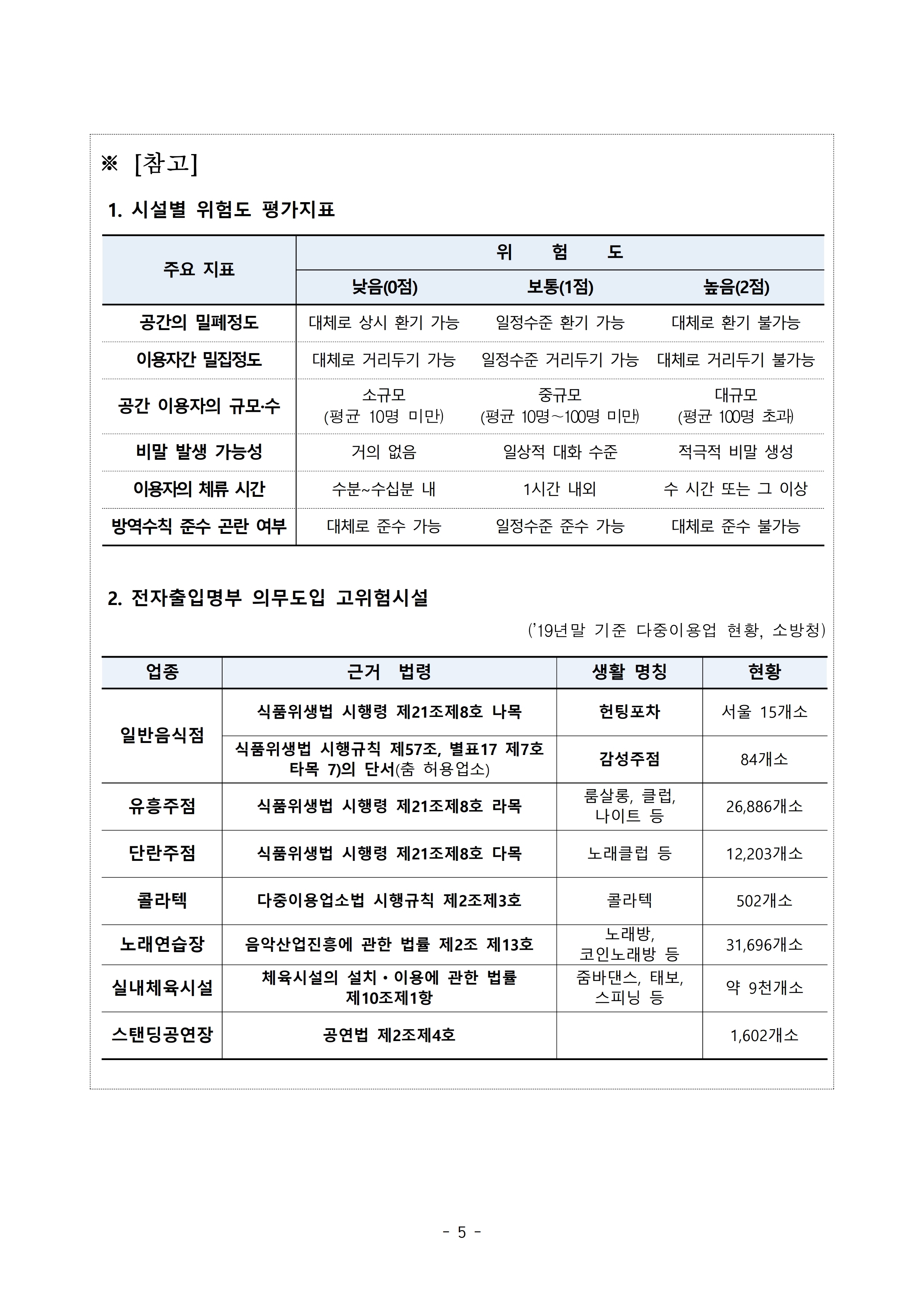 | 유흥시설 | 유흥주점(클럽, 룸살롬 등), 단란주점, 콜라텍 |