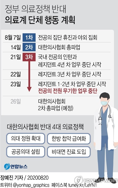 최근 사랑제일교회발 집단감염으로 코로나19가 확산되어 사회적 거리두기 3단계를 논할만큼 힘든 상황 가운데서 대한의사협회는 8월 26일부터 28일까지 2차 전국의사파업을 진행하겠다고 밝히며 논란이 되고 있습니다.
