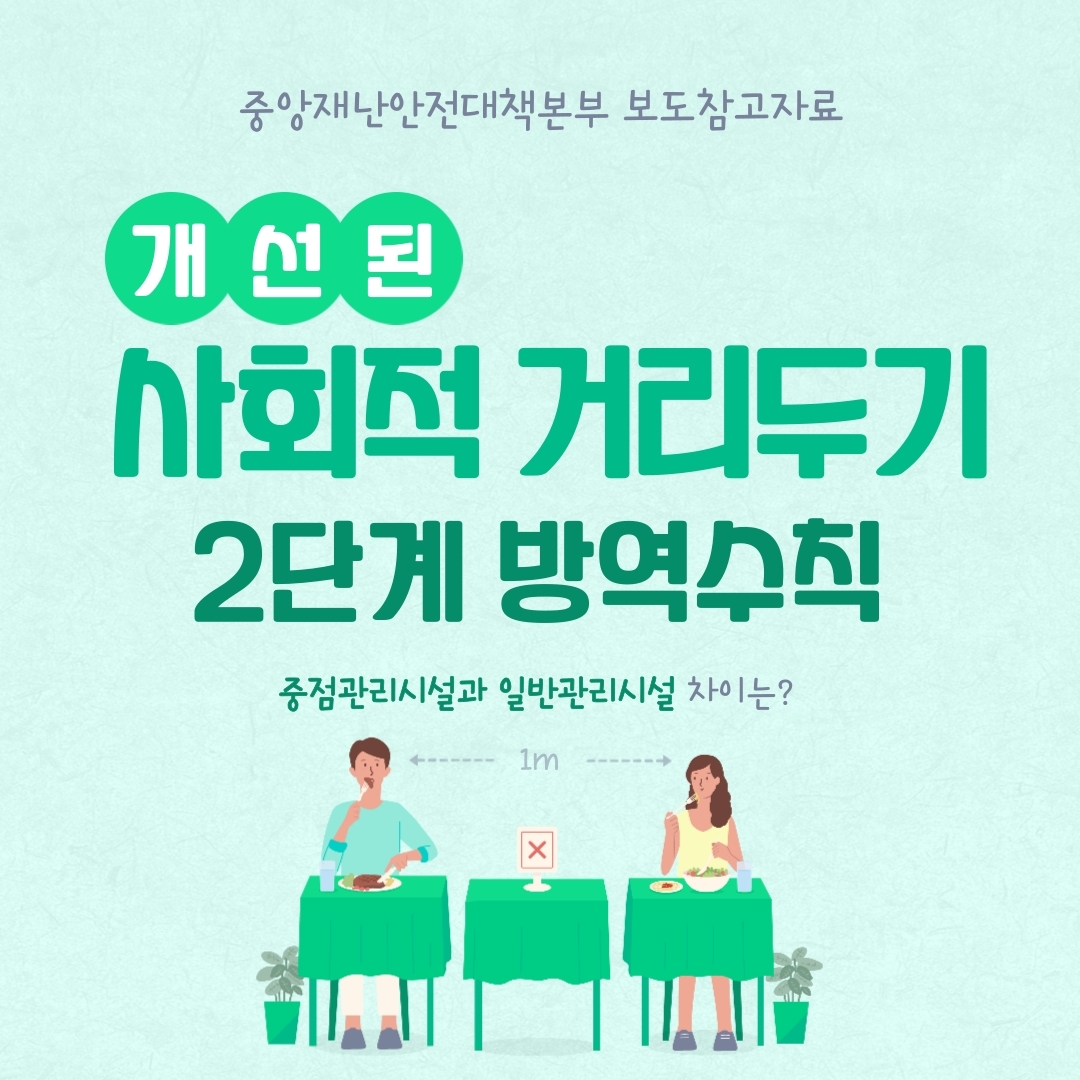 지난 11월 1일에 개선된 사회적 거리두기 2단계 지침을 알려드립니다. 이 내용은 중앙재난안전대책본부 보도참고자료를 기반으로 작성되었습니다.