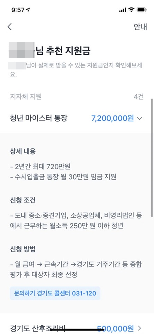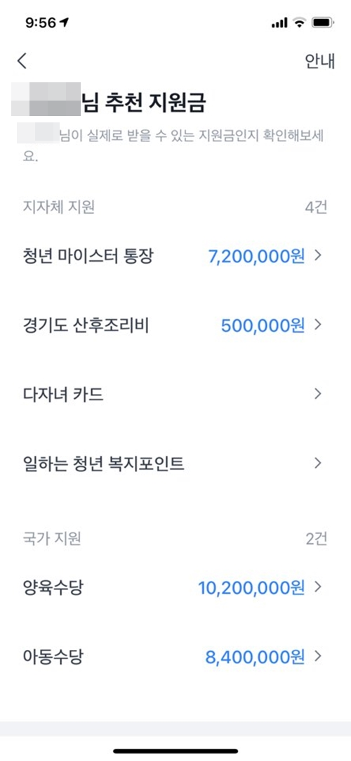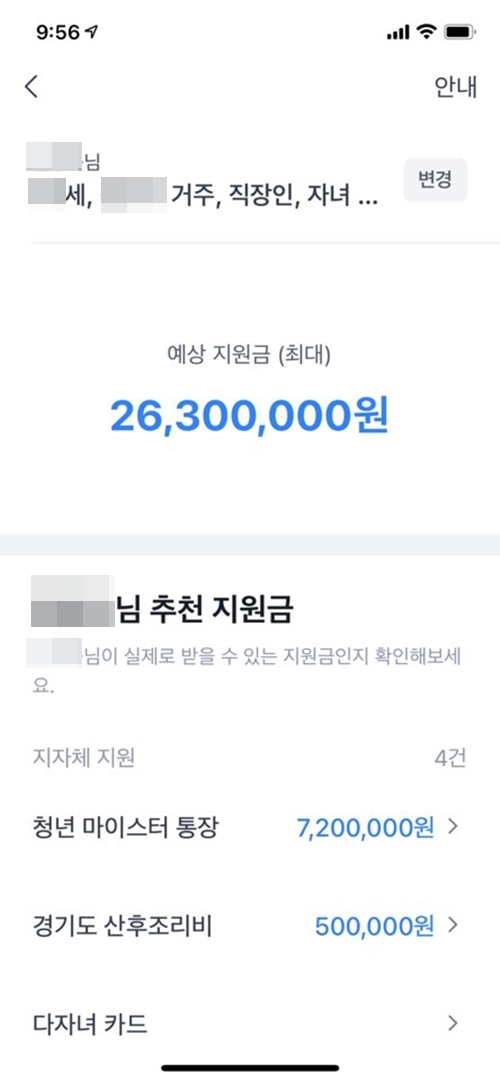나의 숨은 (예상) 지원금 확인하기