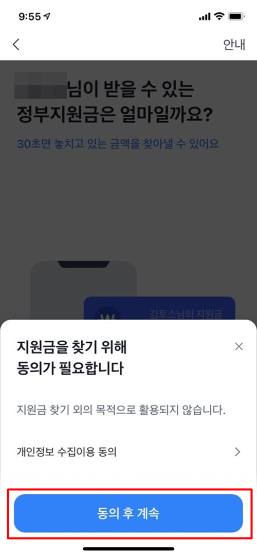 내 지원금 확인하기, 동의