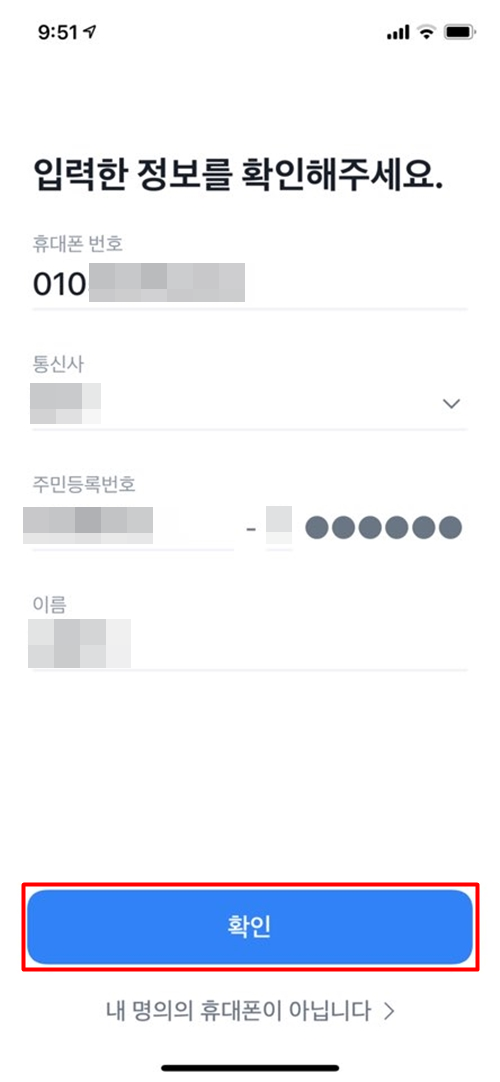 실명을 입력하시고, 휴대폰 인증 과정도 거쳐야 합니다.