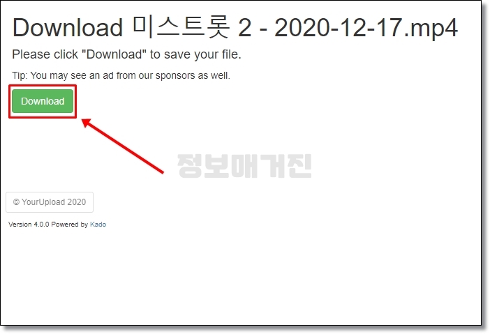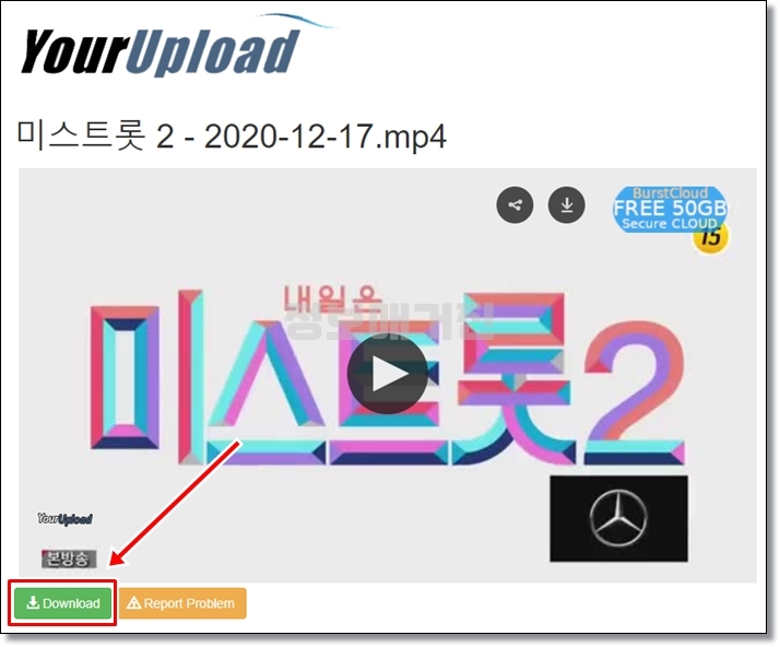 미스트롯2 영상이 업로드되어 있는 링크를 안내해줍니다. 현재 시간 기준으로 'YourUpload' 링크가 잘 나오기 때문에 클릭해서 들어줍니다. 어떤 링크는 클릭하면 이상한 광고가 나타나기 때문에 조심하셔야 합니다.