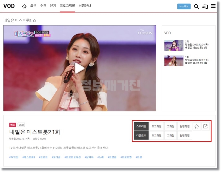 하지만 초고화질의 영상을 스트리밍으로 감상하거나 다운로드하고 싶다면, TV조선 홈페이지에서 유료결제로 진행하시는 것을 추천드립니다.