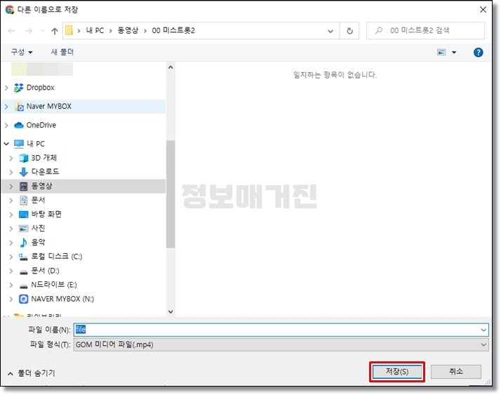 원하는 위치에 파일 이름을 수정한 뒤, '저장'버튼을 눌러주시면 됩니다.