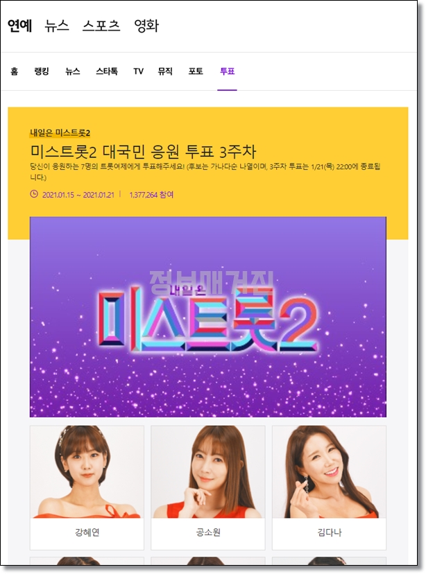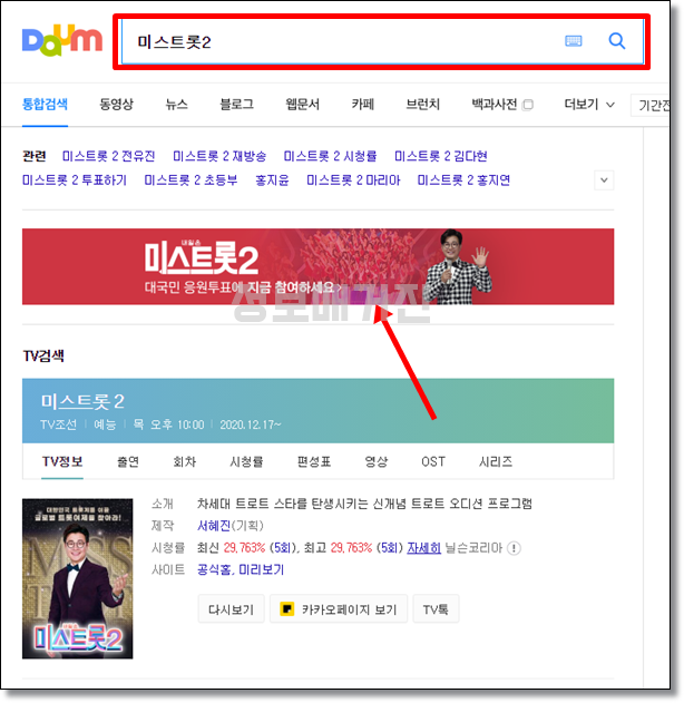 '다음'에서 '미스트롯2' 검색하기 ▶ 투표 배너