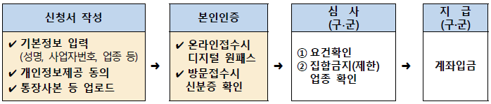 사업장 소재지 구·군 접수, 구·군 심사 후 지급