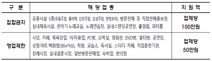 - 집합금지·영업제한 행정명령 이행 위반 사업장 지원 제외
