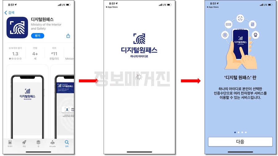 '디지털원패스 앱' 다운로드하기(모바일 인증 선택 시)