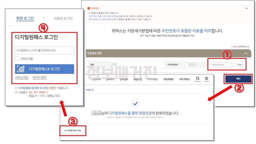 예시로 위택스에 로그인을 해보도록 하겠습니다.