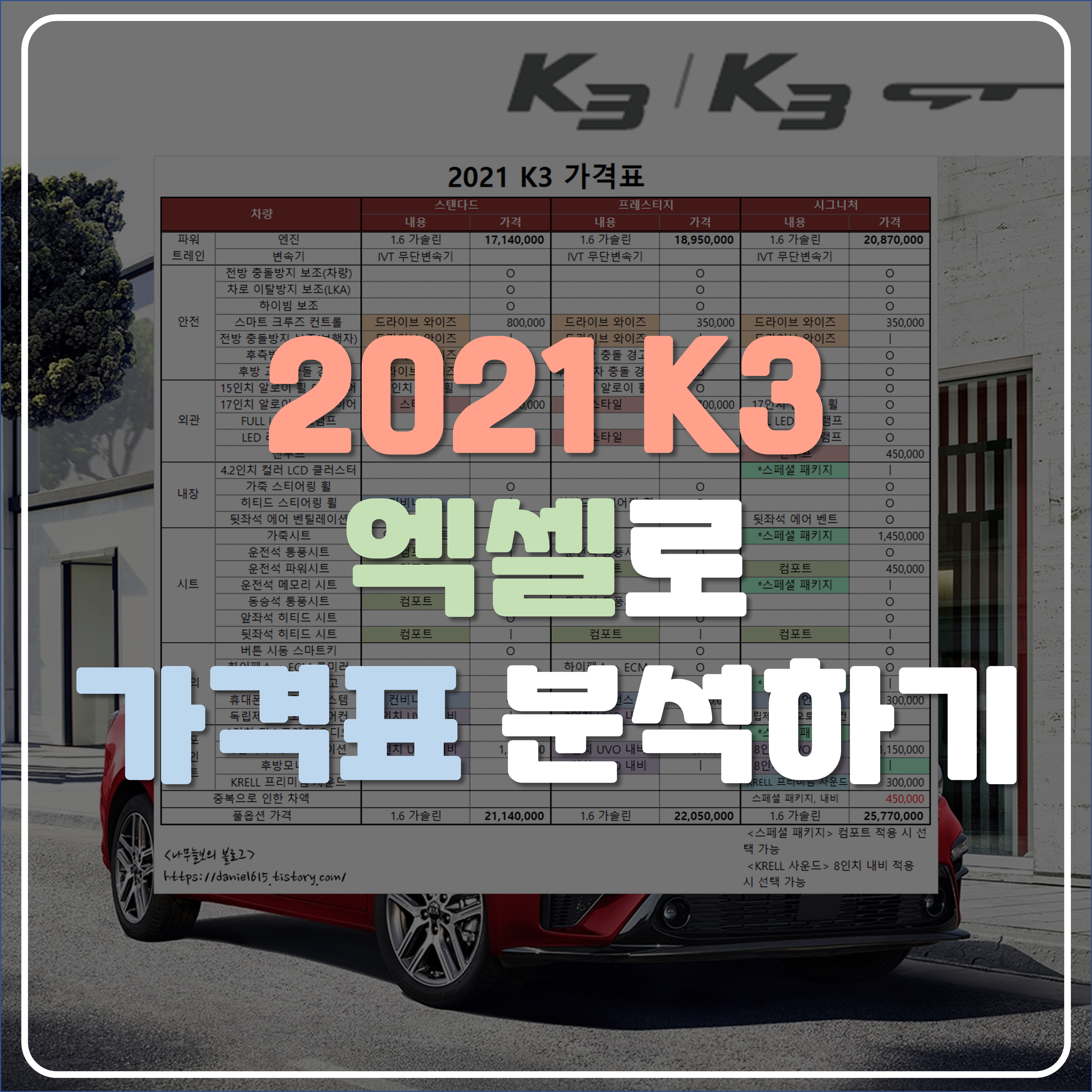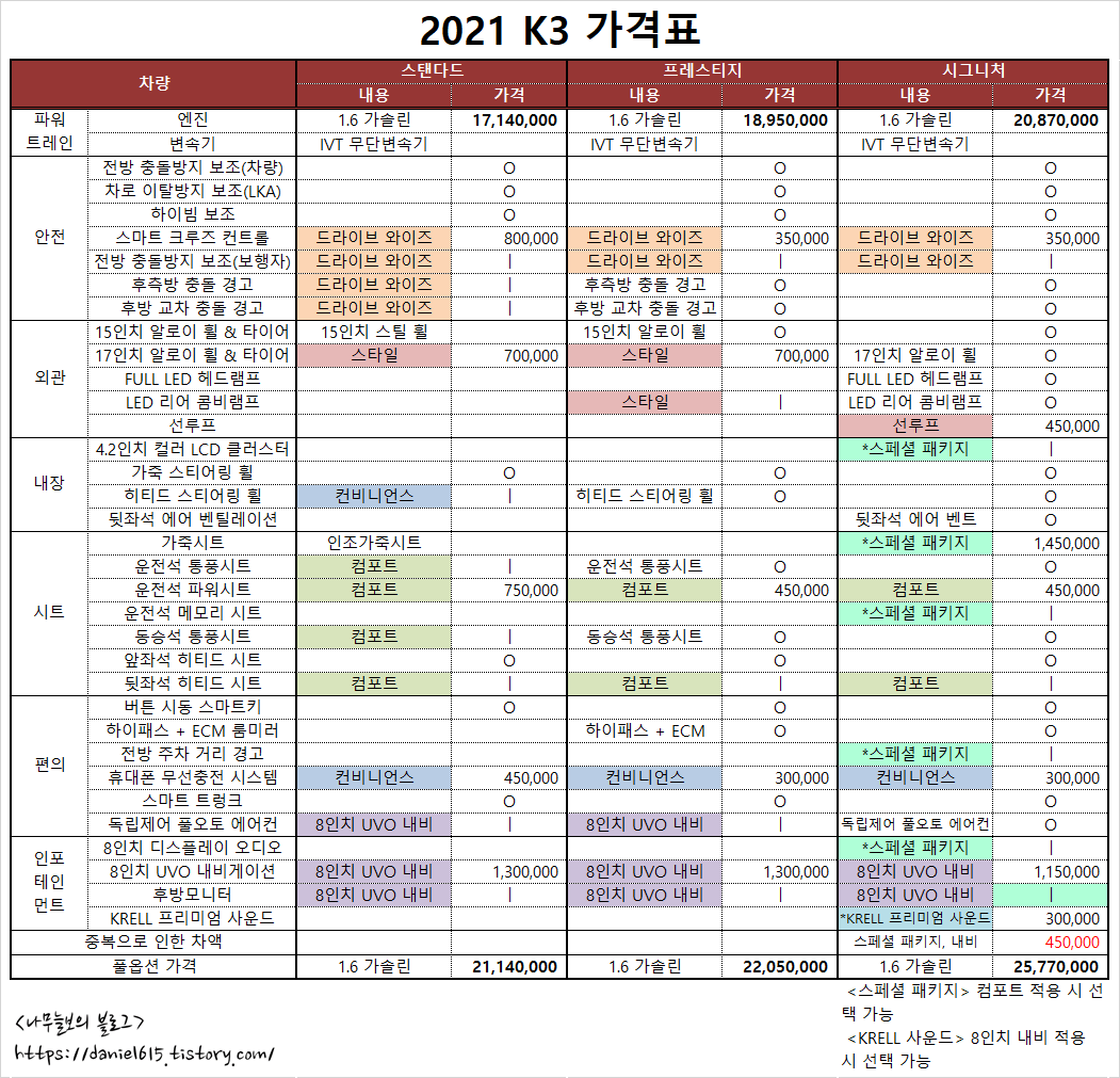 여기까지 K3의 가격표를 면밀하게 분석해 봤습니다.