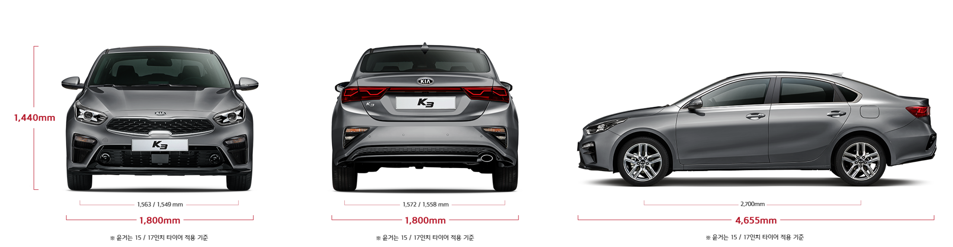 | 윤거 후 | 1,572(15") / 1,558(17") |
