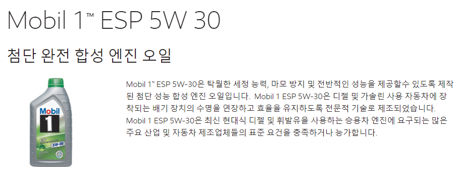 참고로 디젤차 엔진오일은 모빌원 ESP 포뮬러 사용합니다.