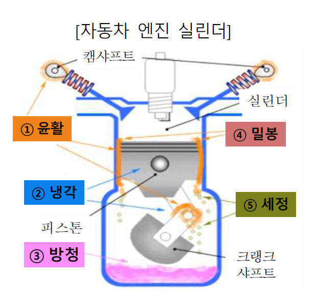 1) "윤활" : 왕복, 회전 운동 시 금속간의 마찰 및 마모 감소