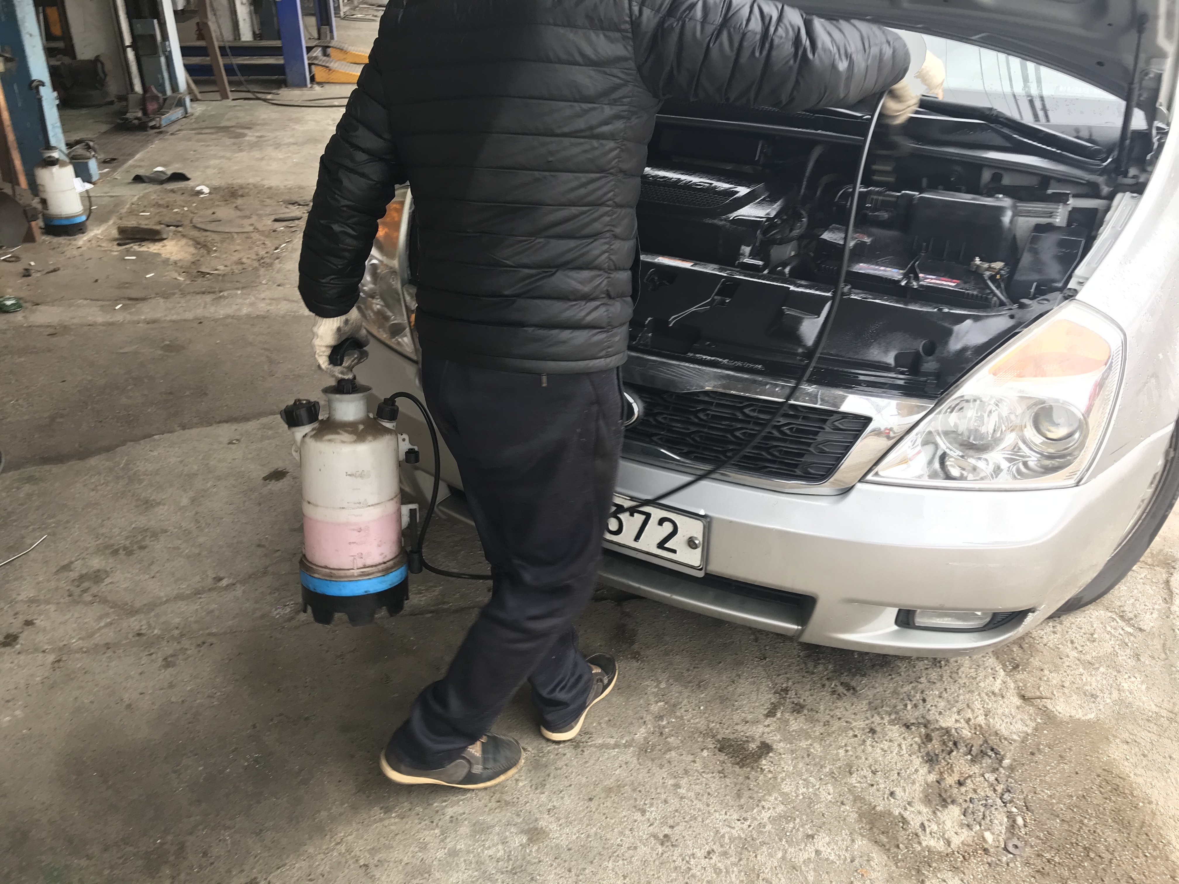 잔유제거는 말 그대로 안에 남아 있는 폐 오일을 모조리 빼내는 것인데요, 사실 시간이 좀 걸리는 작업입니다.