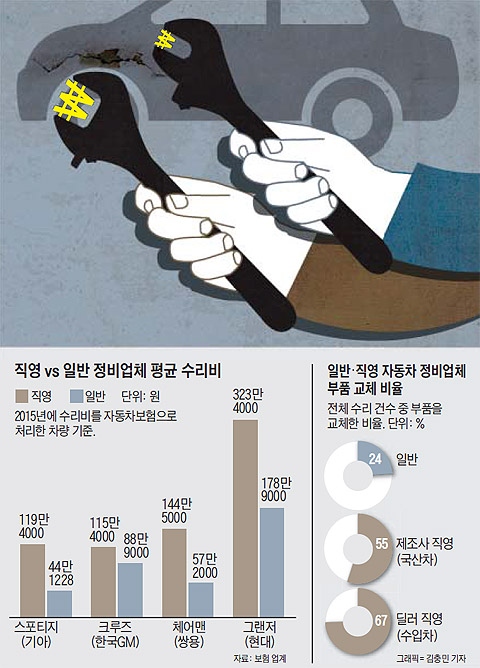 직영 서비스센터 수리비, 동네 정비소의 최대 2.7배
