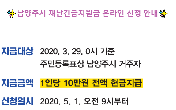 (3월 30일 이후 남양주시 전입자는 미지급)