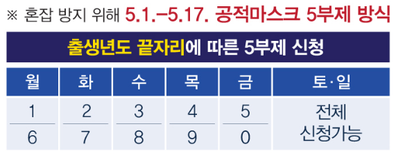 혼잡을 방지하기 위해 5월 1일~17일까지 2주 동안은 5부제 방식으로 신청할 수 있으니, 자신의 출생연도 끝자리에 따른 해당 요일을 정확하게 확인해야 합니다.