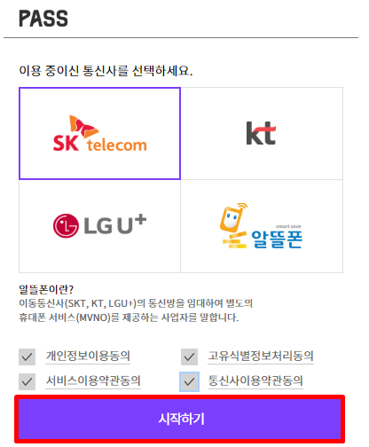 자신의 통신사를 선택해주시고, 문자인증을 하시면 됩니다.