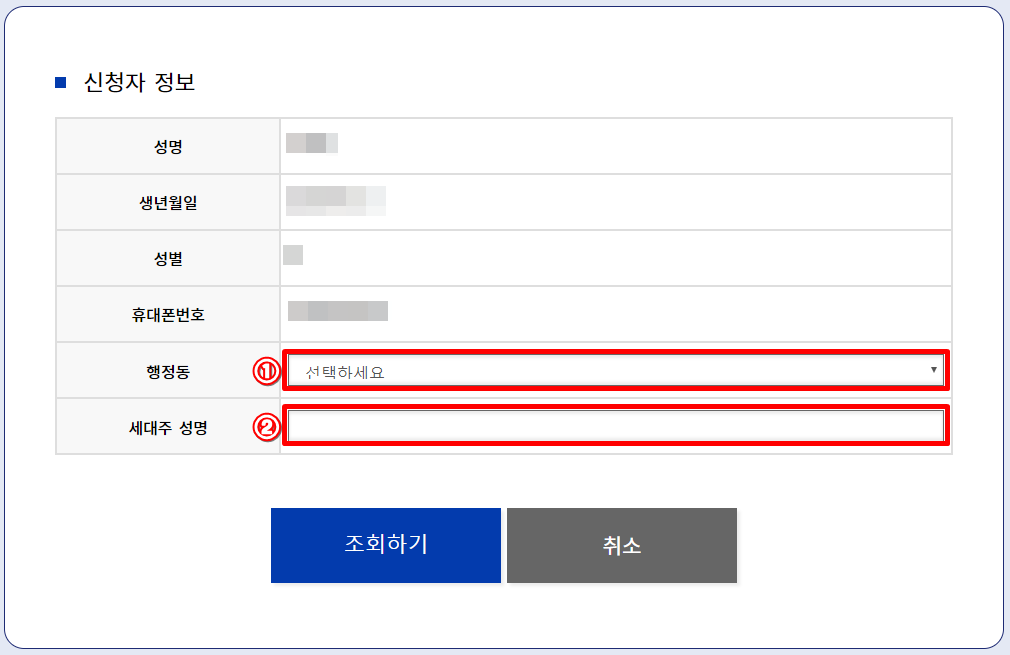 조회하기를 누르면 아래와 같이 신청자 정보가 뜨게 됩니다.