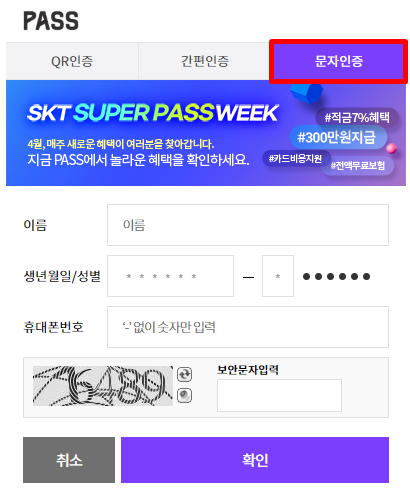 저는 간편인증이 간편하지가 않아서 그냥 문자인증을 사용합니다.